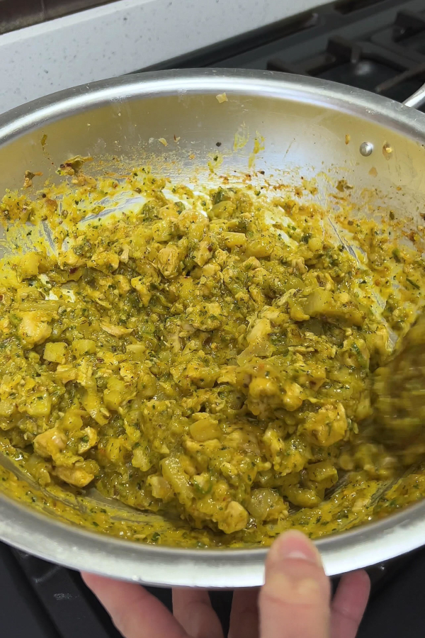 - Stir in the piccalilli mixture into the chicken mixture making sure to combine well.