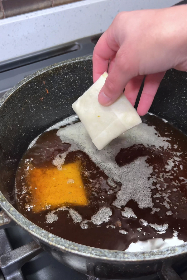 WHEN FREEZING: Layer them in a tray making sure to keep a gap between each layer to avoid the samosa squares from sticking.